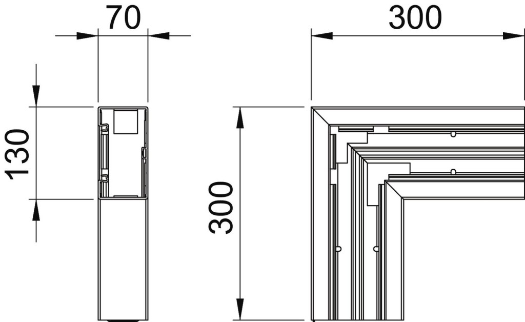 Lapos sarokelem GK szerelvénybeépítő csatornák irányváltásához. A fedelet külön kell megrendelni.
