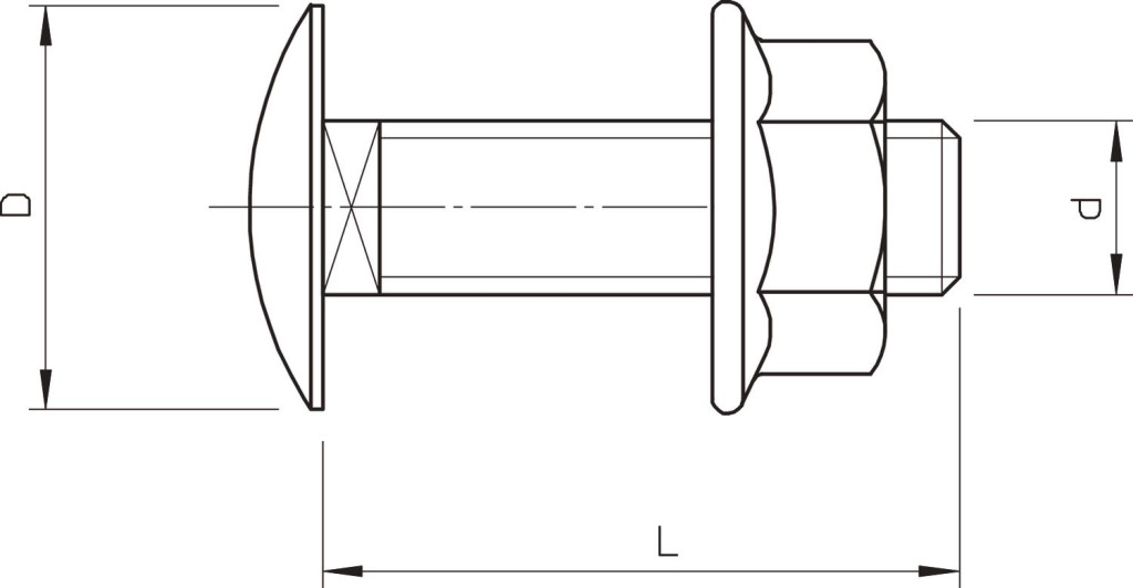 Elfordulás ellen biztosított, -négyszögletes nyakú- lencsefejű csavar, kombinált anyával.