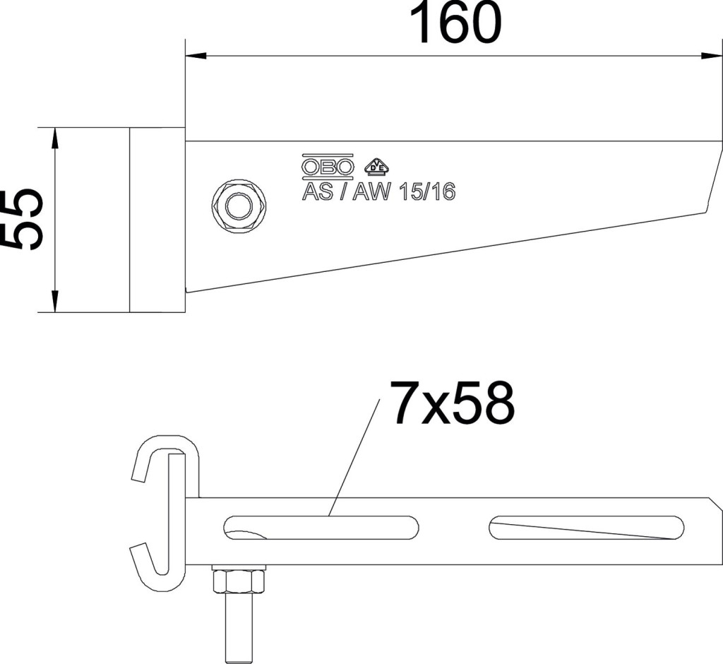 OBO 6421334 AS 15 16 FT Oszlopra Szerelhető Konzol IS8-oszlophoz B=160mm merítetten tűzihorganyzott acél