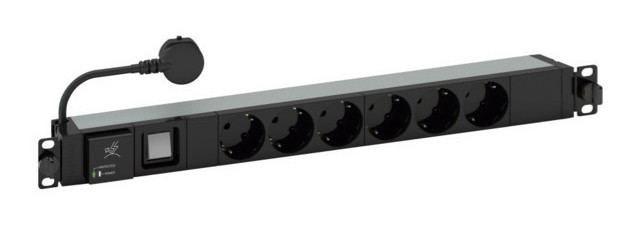 LEGRAND 646836 elosztósor 19"/1U túlfeszültség-védelemmel KIM:6xSHK-gyermekvédett TÁP: háztartási -2P+F 16A 3 méter