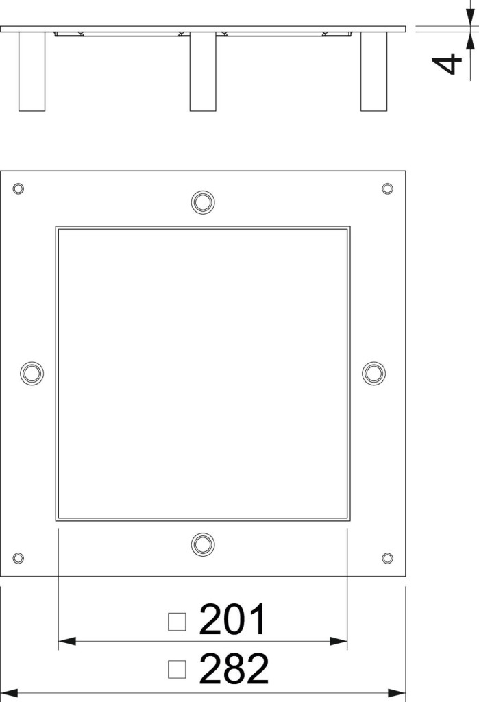 Nagy teherbírású szerelőfedél UZD250-3 doboz számára 4-es névleges méretű nagy teherbírású szögletes kazetta beépítéséhez. A szerelőnyílás 3 mm-es mélyedéssel van ellátva, és utólag vakfedéllel zárható.