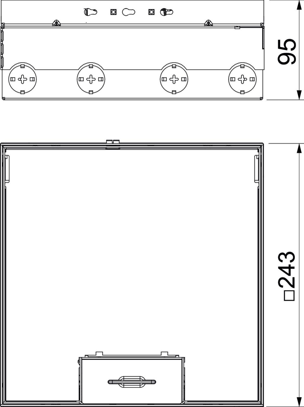 Négyzetes padlódoboz száraz ápolású üreges padlókban és esztrichpadlókban történő alkalmazáshoz, beltéren. Beépíthető ház kikönnyített bevezetőnyílásokkal védőcsövekhez (M25). A fedél 4 szintezőlábbal beállítható a padlóburkolat felszínéhez. A minimális beépítési mélység 95 mm, a szintezési tartomány + 30 mm.