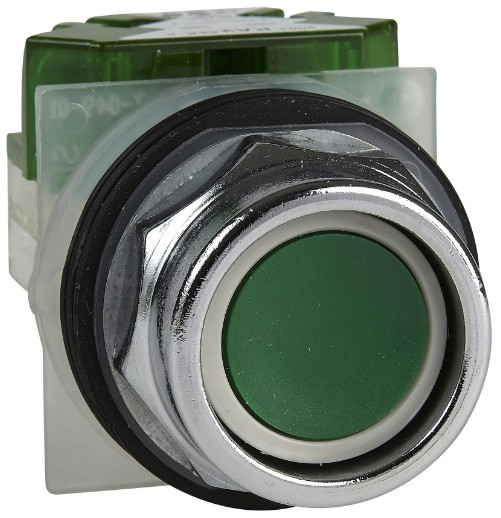 SCHNEIDER 9001KR2GH5 Nyomógomb védőgyűrűvel, 1NO, zöld