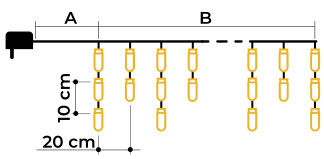 * Fényfüggöny / Jégcsapfüzér: Hosszú főkábelről lelógó, különböző hosszúságú (jégcsapfüzér) vagy azonos hosszúságú (fényfüggöny) fényfüzérek.