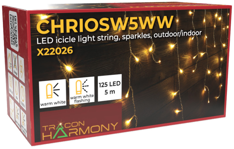 Tracon CHRIOSW5WW Karácsonyi sziporkázó jégcsapfényfüggöny, kültéri/beltéri 230VAC, 5+5M, 125LED, 3,6W, 2600-2700K, IP44 általános leírása: