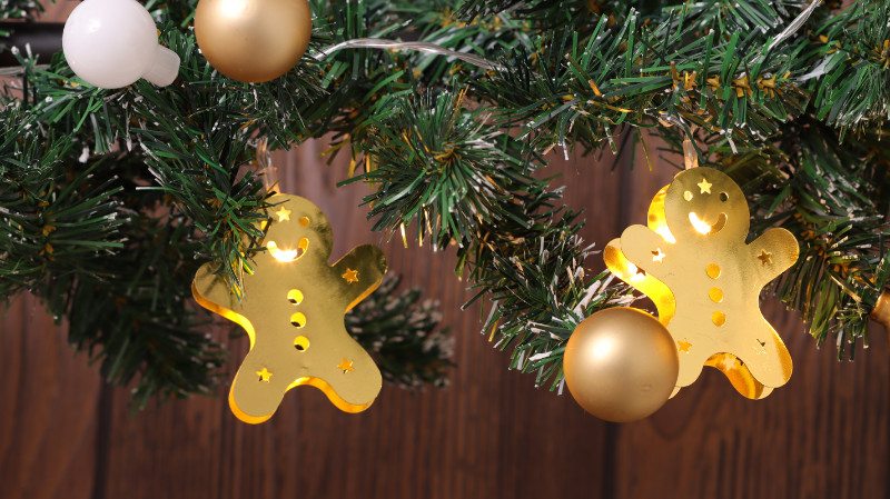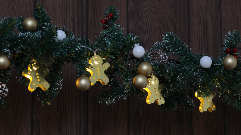 TRACON CHRSTGMGM10WW LED karácsonyi lánc, mézeskalács, fém, elemes (X22061) Timer 6+18h,10LED, 3000K, 2xAA