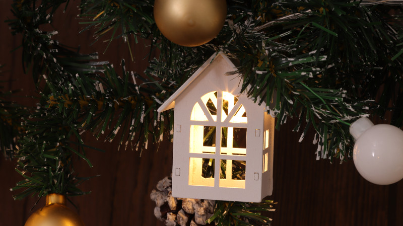CHRSTHWW10WW LED karácsonyi lánc, házikó, fehér, fa, elemes Timer 6+18h,10LED, 3000K, 2xAA