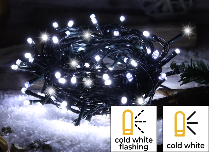 TRACON CHRSTOSC200CW Karácsonyi sziporkázó fényfüzér, kültéri/beltéri (X22012) 230VAC, 5+20M, 200LED, 6W, 12000-13000K, IP44