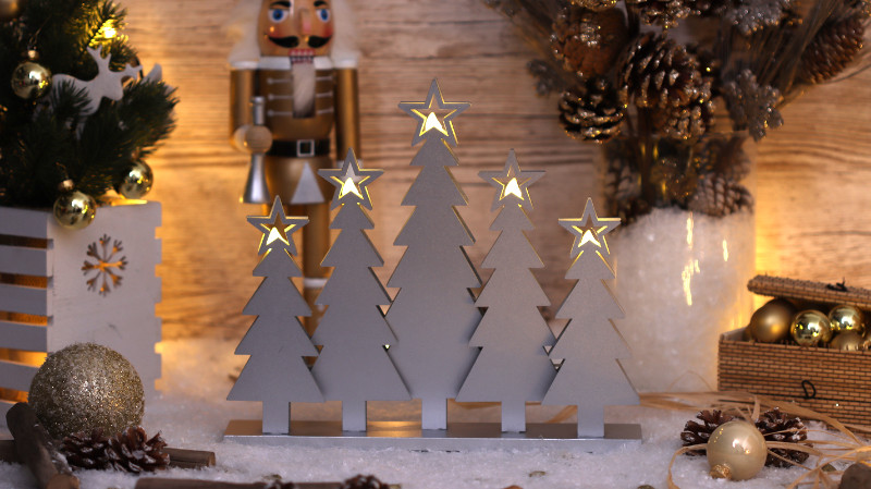 Tracon CHRTRWS5WW LED karácsonyi gyertyapiramis,karácsonyfa,fa, ezüst, elemes Timer 6+18h,5LED, 3000K, 2xAAA általános leírása:
