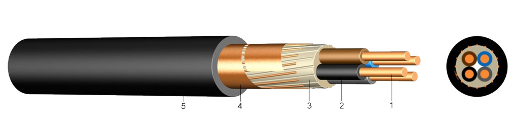 E-XYCY 5x16/16 mm2 PVC szigetelésű kábel koncentrikus vezetővel, 16 mm² árnyékolás + rézszalag 0,6/1kV fekete