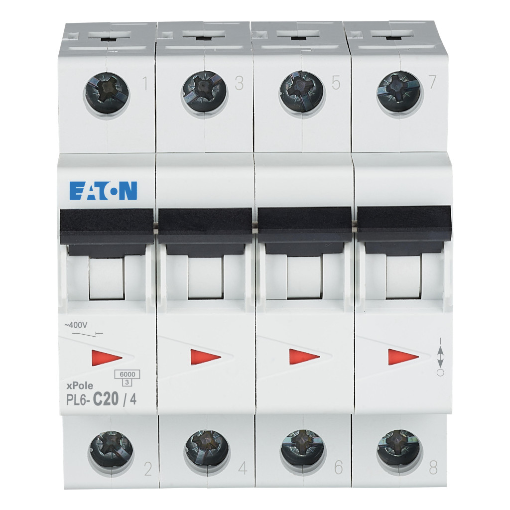 EATON 166522 Kismegszakító, 6kA 4 pólus 20A, C karakterisztika, PL6-C20/4