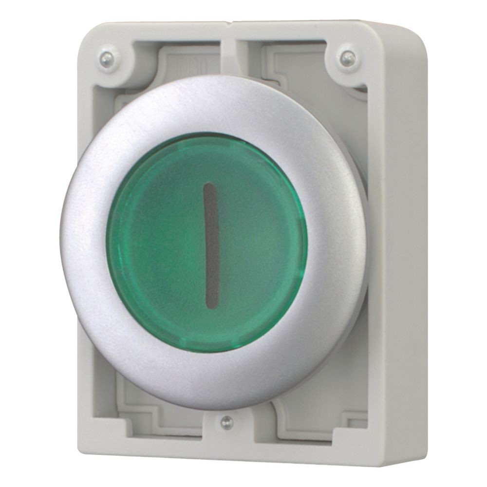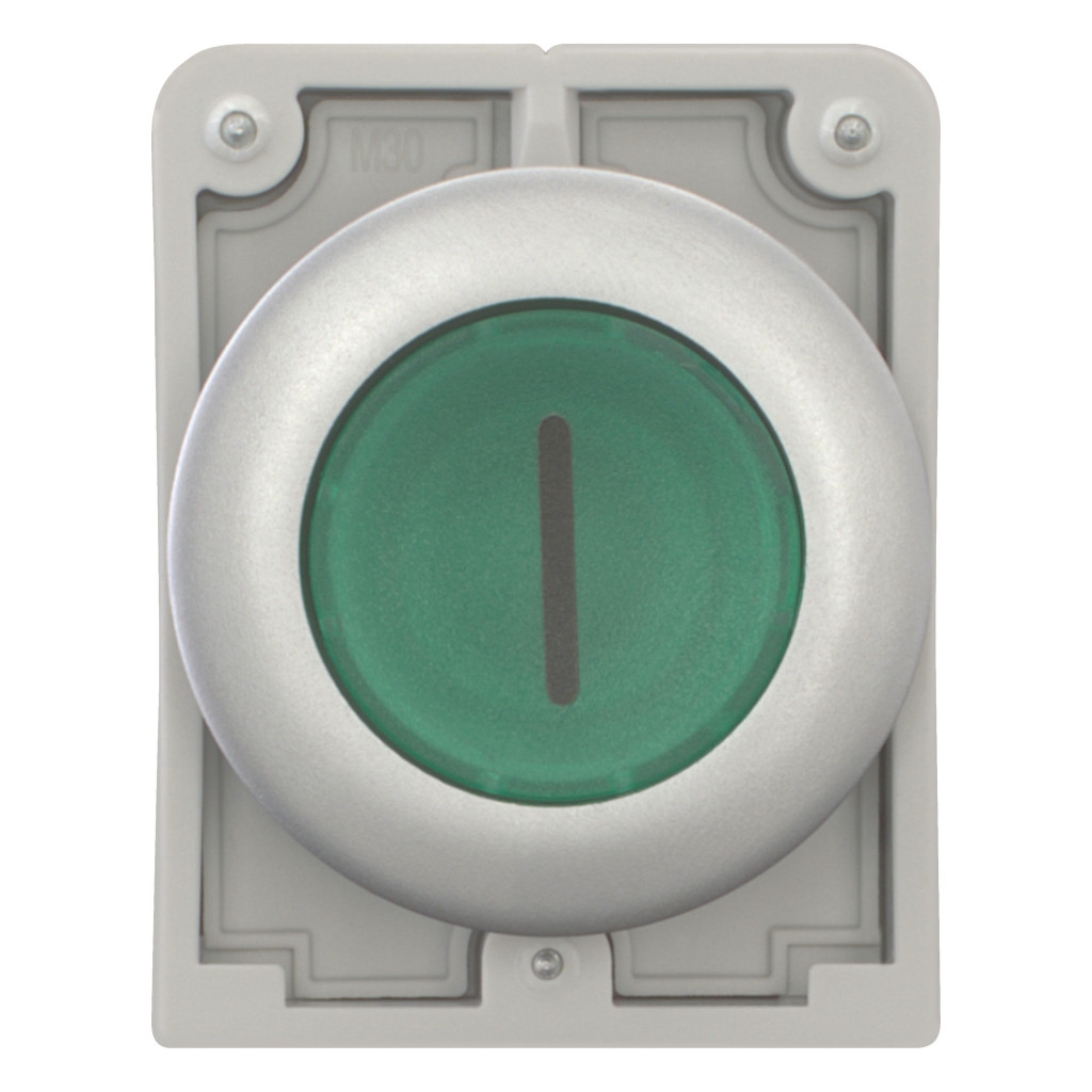 EATON 182932 Világító reteszelt nyomógomb,30mm,lapos,zöld,"I"