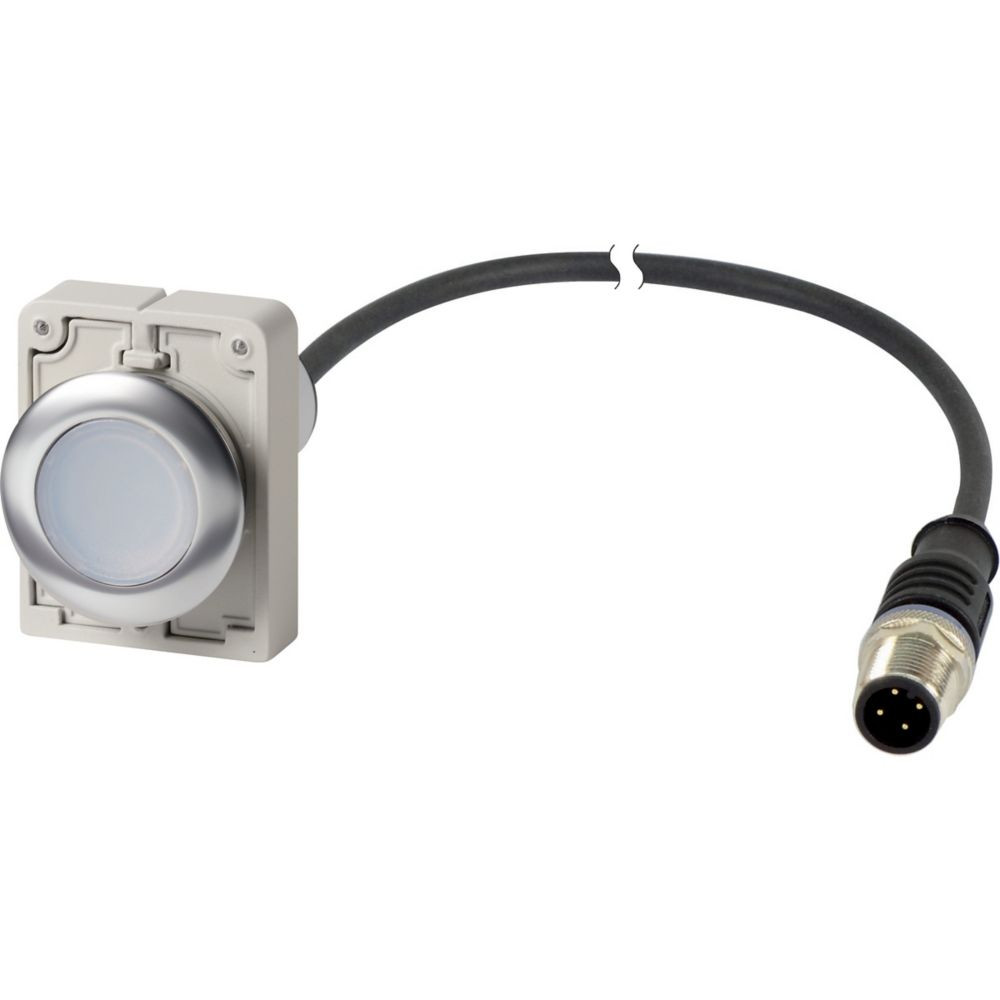 EATON 186007 Kompakt, megvilágított, sülly. nyomógomb kábel 1m M12A, reteszeléssel, 24V AC/DC, fehér, 1Z