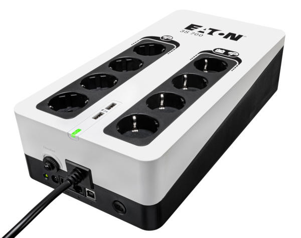 EATON 3S700D UPS 3S, 1/1fázisú, 700VA/420W, kim.aljzatok DIN (Schuko) 4x bizt.mentés + 4x túlfeszültségvédő, USB