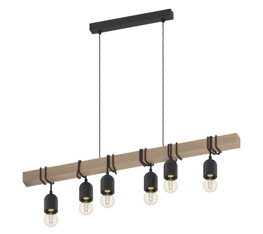 EGLO 95499 függeszték E27 6x60W fekete/tölgy Townshend