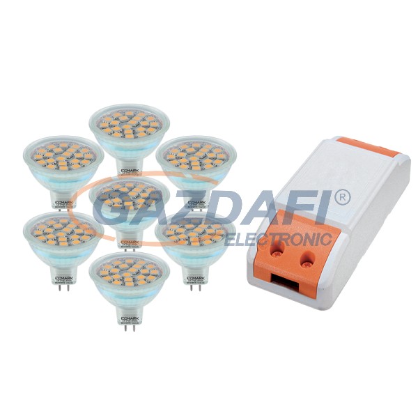 ELMARK 99set7LED395 LED szett: Tápegység, 24W + 7db LED fényforrás, LED21SMD, GU5.3, 3W, 12V, 4000K, 30000h