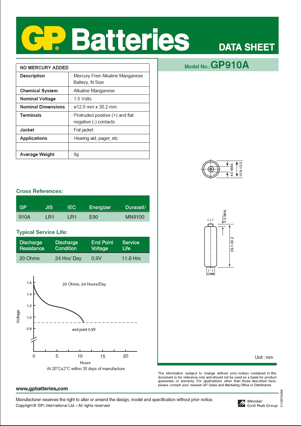 Gyártó EMOSGyártói cikkszám 1021091012Súly 12.5Vonalkód / EAN-kód 4891199000065értékesítési csomagolás 2 db, bliszterméretek 12,0 × 30,2 mmmárka GPtölthető nemtípus GP 910A (N, LR1)akkumulátor mérete nincs megadvakapacitás 885 mAh (20 kohm-os terhelés esetén)kategória/sorozat High Voltagekémiai összetétel alkáli-speciálismax. tárolási idő 3 évtöltési ciklusok száma nem tölthetőEMOS TERMÉKKATALÓGUS (2025/2026) EMOS ÚJDONSÁGOK KATALÓGUS (2025) EMOS KARÁCSONYI KATALÓGUS (2025) EMOS LIGHTING KATALÓGUS (2025/2026) EMOS GOSMART KATALÓGUS EMOS KERTÉSZETI TERMÉKEK KATALÓGUSA Numero articolo EMOSB1305