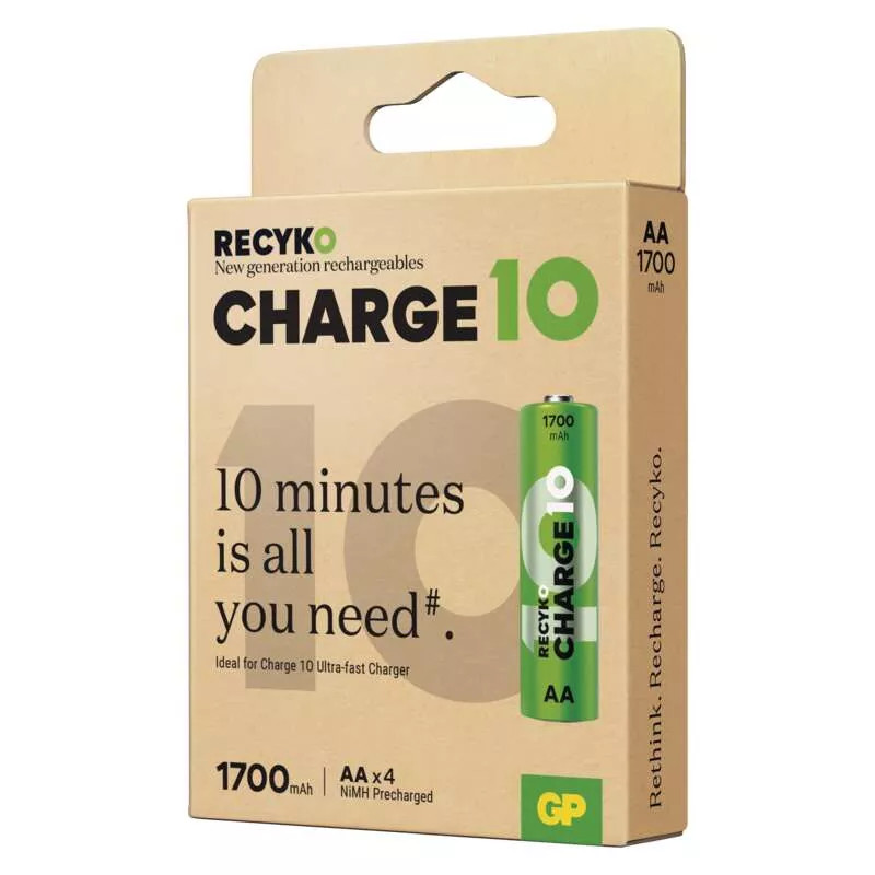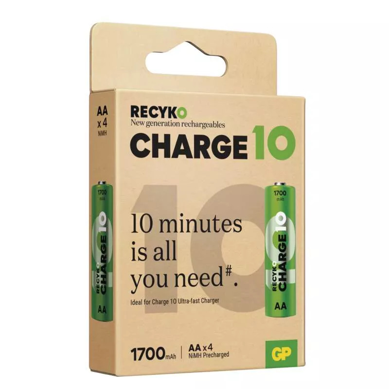 Ismered azt az érzést, amikor úton vagy, felkapod a készülékedet, és hirtelen rájössz, hogy lemerült az akkumulátorod? A Recyko Charge 10 AA elemekkel ez nem probléma. Csak helyezze be őket a GP Charge 10 töltőbe, és csak 10 perc múlva máris teljes akkumulátorkapacitással indulhat útnak az úti cél felé.