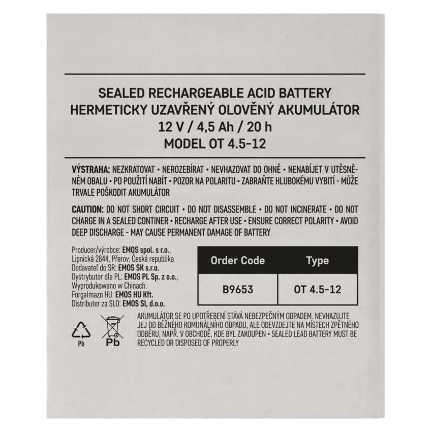 EMOS B9653 AKKUMULÁTOR 12V 4,5AH FAST.4,7 MM