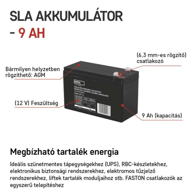 EMOS B9675 AKKUMULÁTOR 12V 9AH FAST.6,3 MM