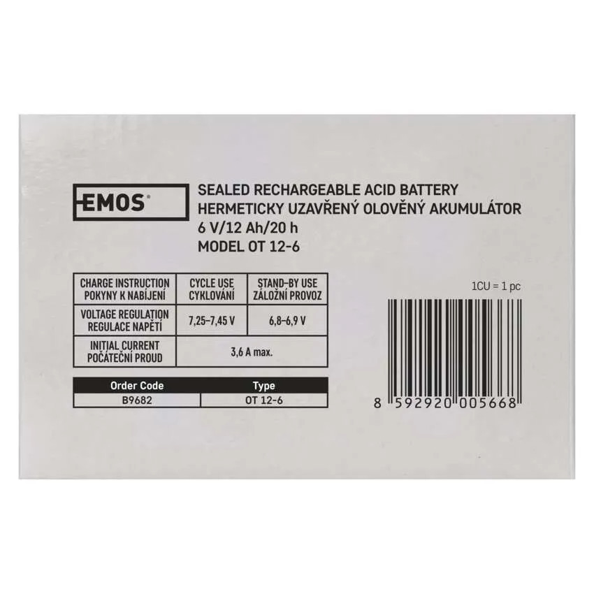 EMOS B9682 AKKUMULÁTOR 6V 12AH FAST.4,7 MM