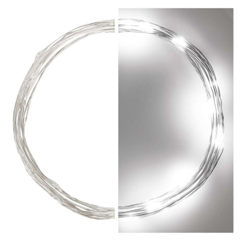 EMOS D3AC07 LED karácsonyi nano fényfüzér, 1,9 m, 2x AA, beltéri, hideg fehér, időzítő, 1,28 W, elem (2× AA), IP20 általános leírása: