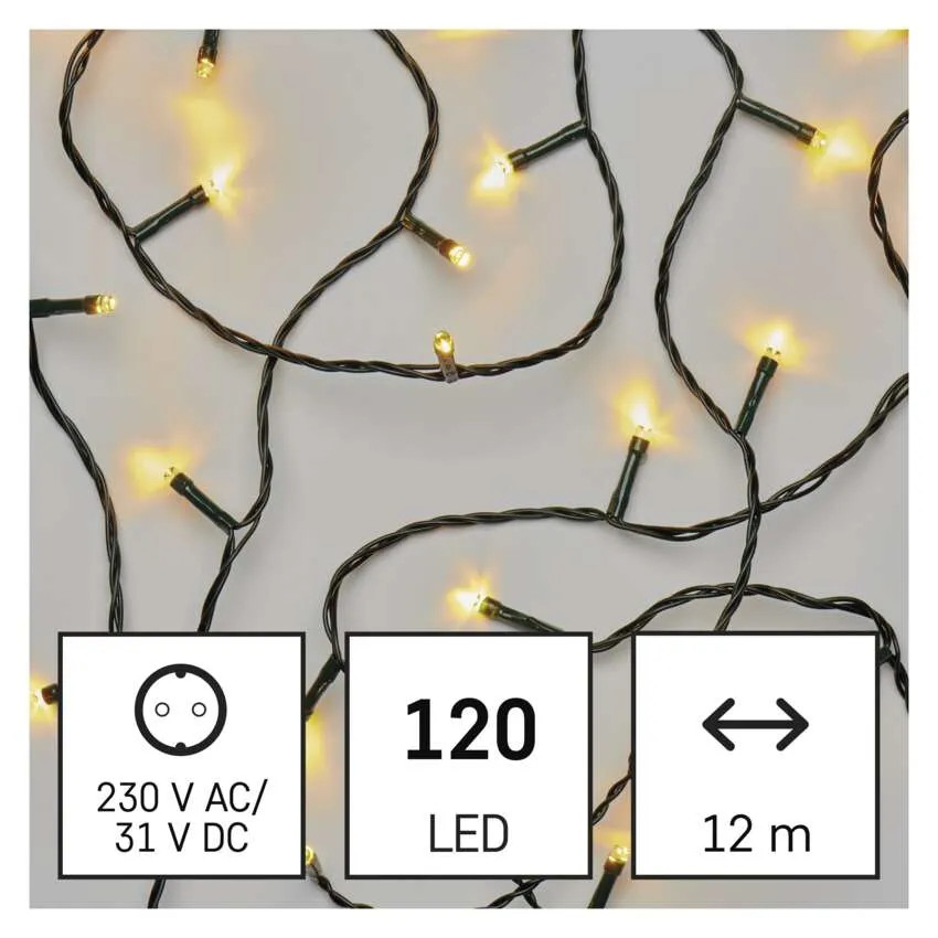 EMOS D4AW09 LED karácsonyi fényfüzér, zöld, 12 m, kültéri és beltéri, meleg fehér, 3,6 W, 230 V AC, IP44 általános leírása: