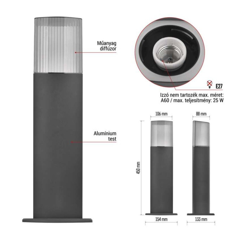 Emos ZGL0A0P LED kerti oszloplámpa, 15,3 x 13,3 x 45 cm, 1 x E27, 25 W