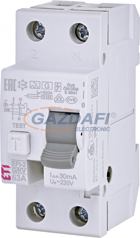 ETI 002062729 EFI-2 A G/K 63A 30mA áram-védőkapcsoló, 2p, váltó és pulzáló hibaáramot érzékelő, rövid késleltetésű (Fi-relé)
