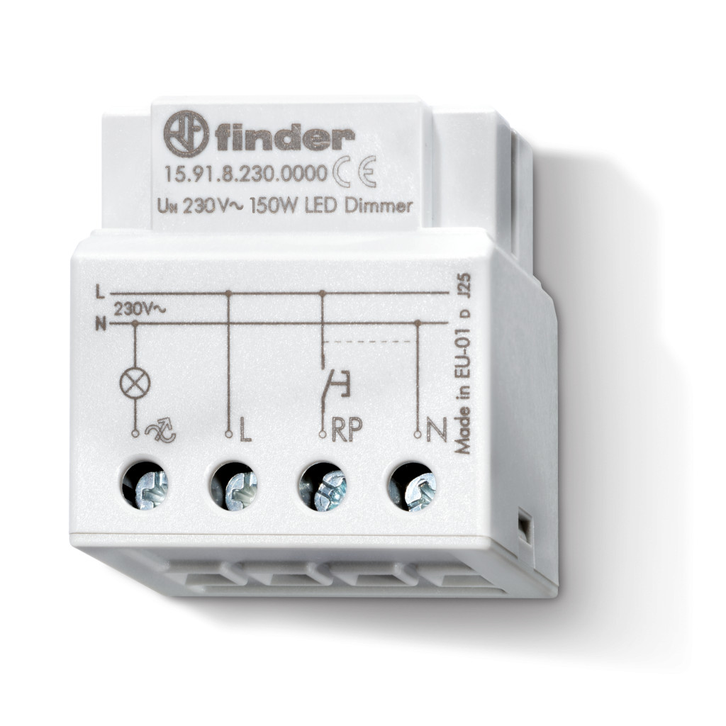 Elektronikus dimmer, mélyített készülékdobozba szerelhető, fázishasításos dimmelés gyujtásszög vezérléssel, megengedett terhelés: izzó - / halogénlámpa (230 V): 100 W, dimmelhető LED fényforrások: 50 W, dimmelhető elektronikus trafók 12/24 V-os LED-ekhez: 50 W, 2 funkció választható nyomógombbal, folyamatos dimmelés, tápfeszültség: 230 V AC