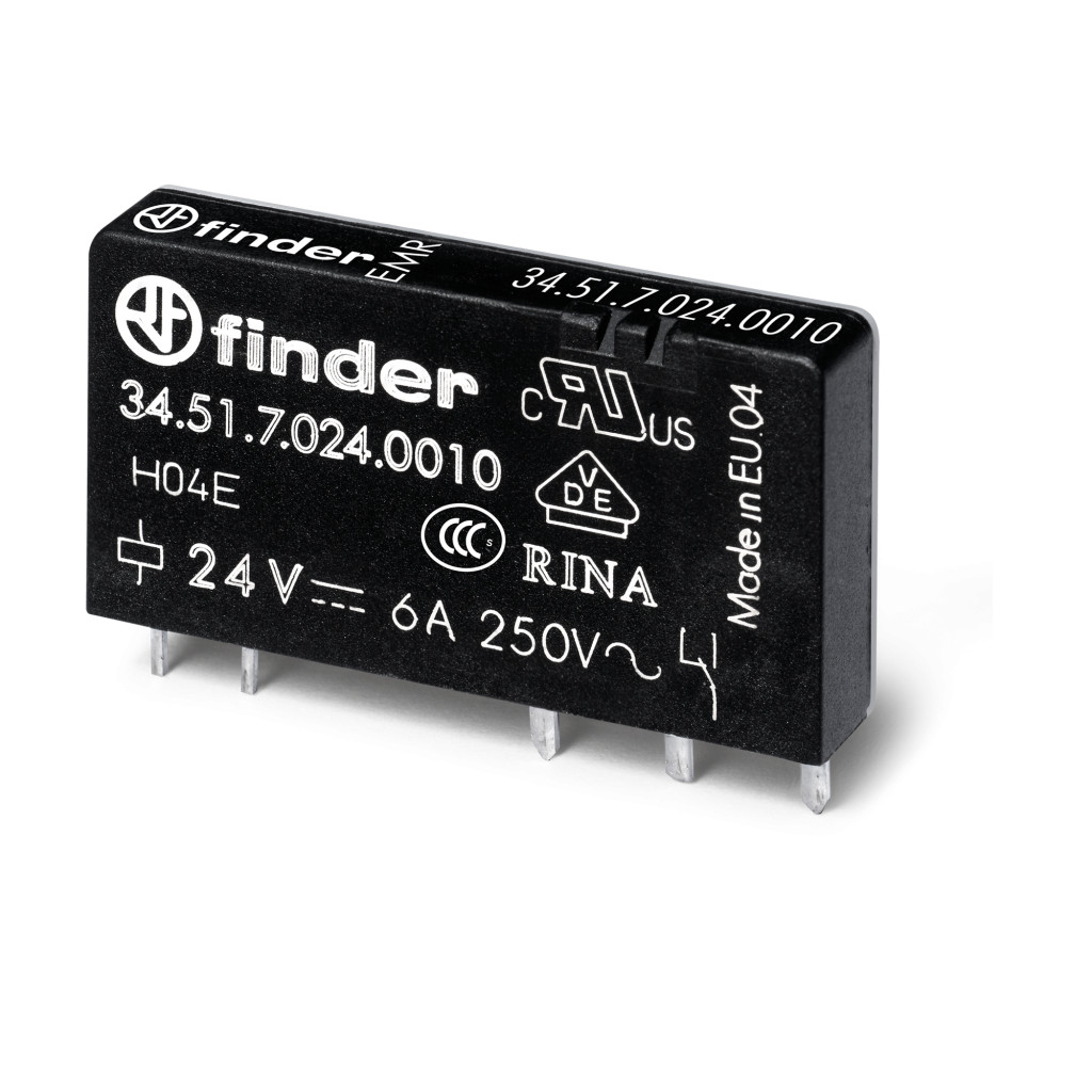 FINDER 345170484310 Ultravékony print- / dugaszolható relé, 1 záróérintkező 6 A, érintkező anyag: AgSnO₂, tekercs: 48 V DC érzékeny