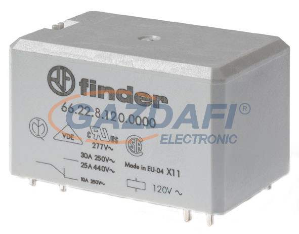 FINDER 66.22.8.230.0000 Teljesítményrelé, 2 váltóérintkező, 30A