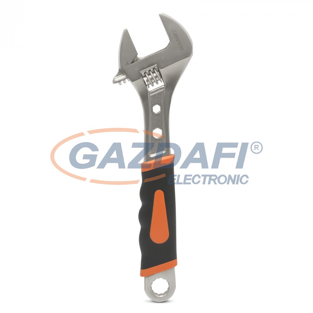Az állítható villáskulcs feje 35 mm szélesre nyitható ki, a kulcs teljes hossza 310 mm.