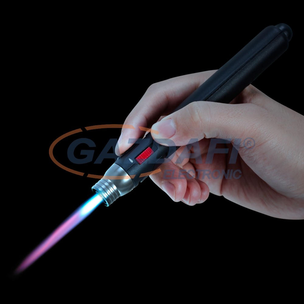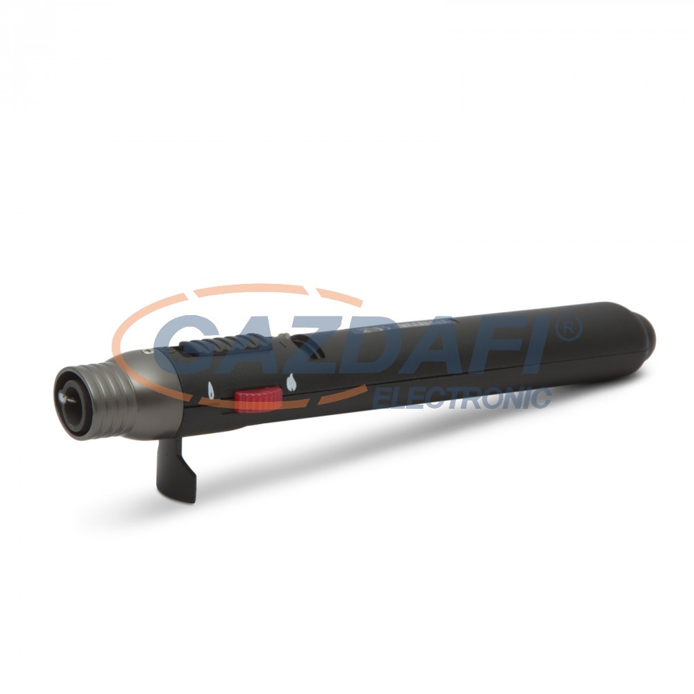 Professzionális gázforrasztó ceruza otthoni, barkács, illetve kemping célra, kihajtható támasztóval és piezo gyújtórendszerrel. Háza rendkívűl strapabíró műanyagból készült. A szabályozható intenzitású nyílt, szúró vagy normál láng alkalmassá teszi a több célú, helyzetfüggetlen felhasználásra, mint például meleghajlítás, felhevítés, perzselés, forrasztás, zsugorítás stb. A termék megolvasztja az arany-, ezüst forraszokat, üvegcsövet, rezet, ónt, alumíniumot és még sok más anyagot. Újratölthető gáztartállyal rendelkezik, amelyet akár egyszerő öngyújtógázzal is tölteni lehet. Biztonságtechnikai előírások tiltják a forrasztóceruzák feltöltött állapotban való szállítását, így a terméket használat előtt fel kell töltetnie!!