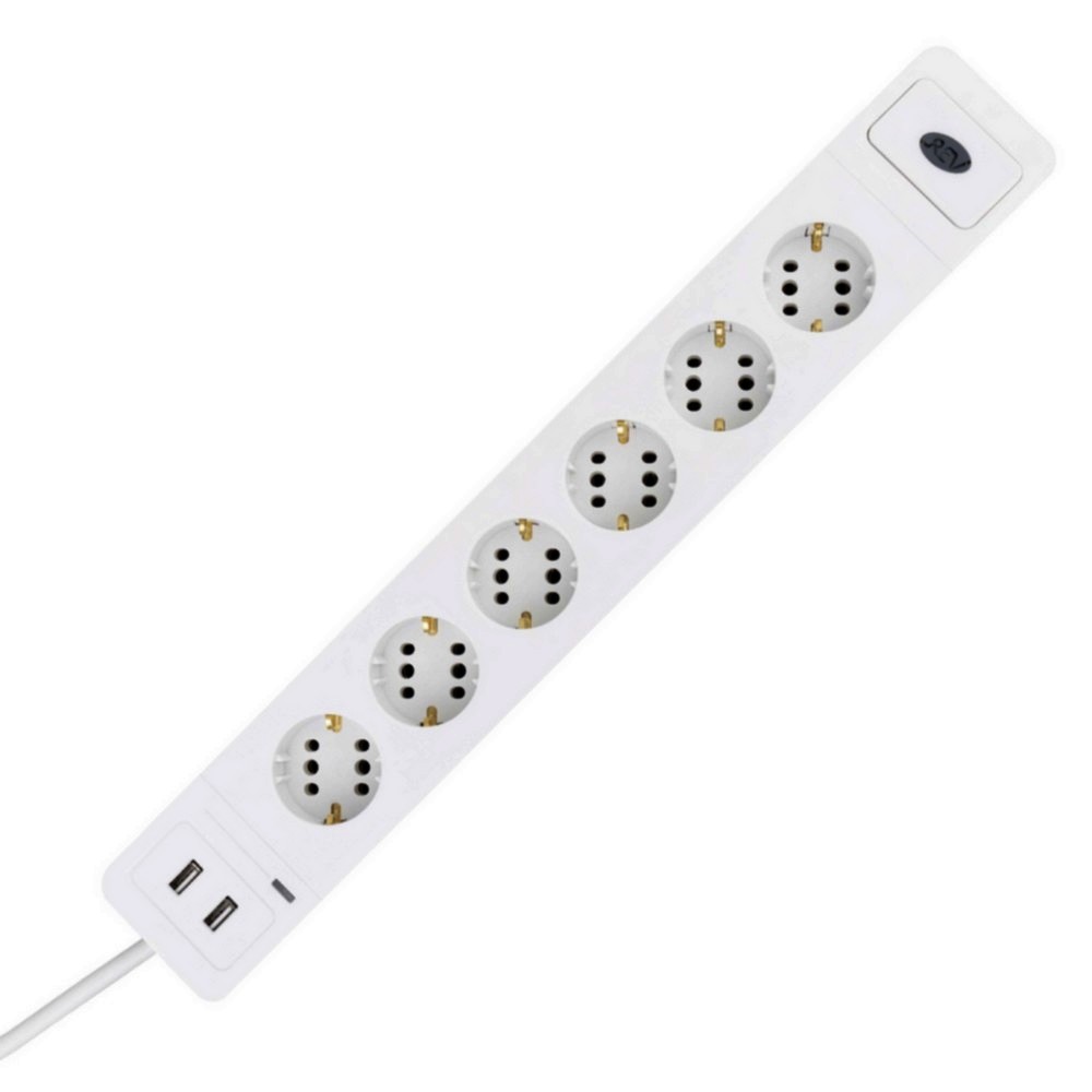 GAO 0015654103 Asztali elosztó, "COMBINI", 6-os, túlfeszültség védelemmel, 3x1,5, 1,4m 2xUSB