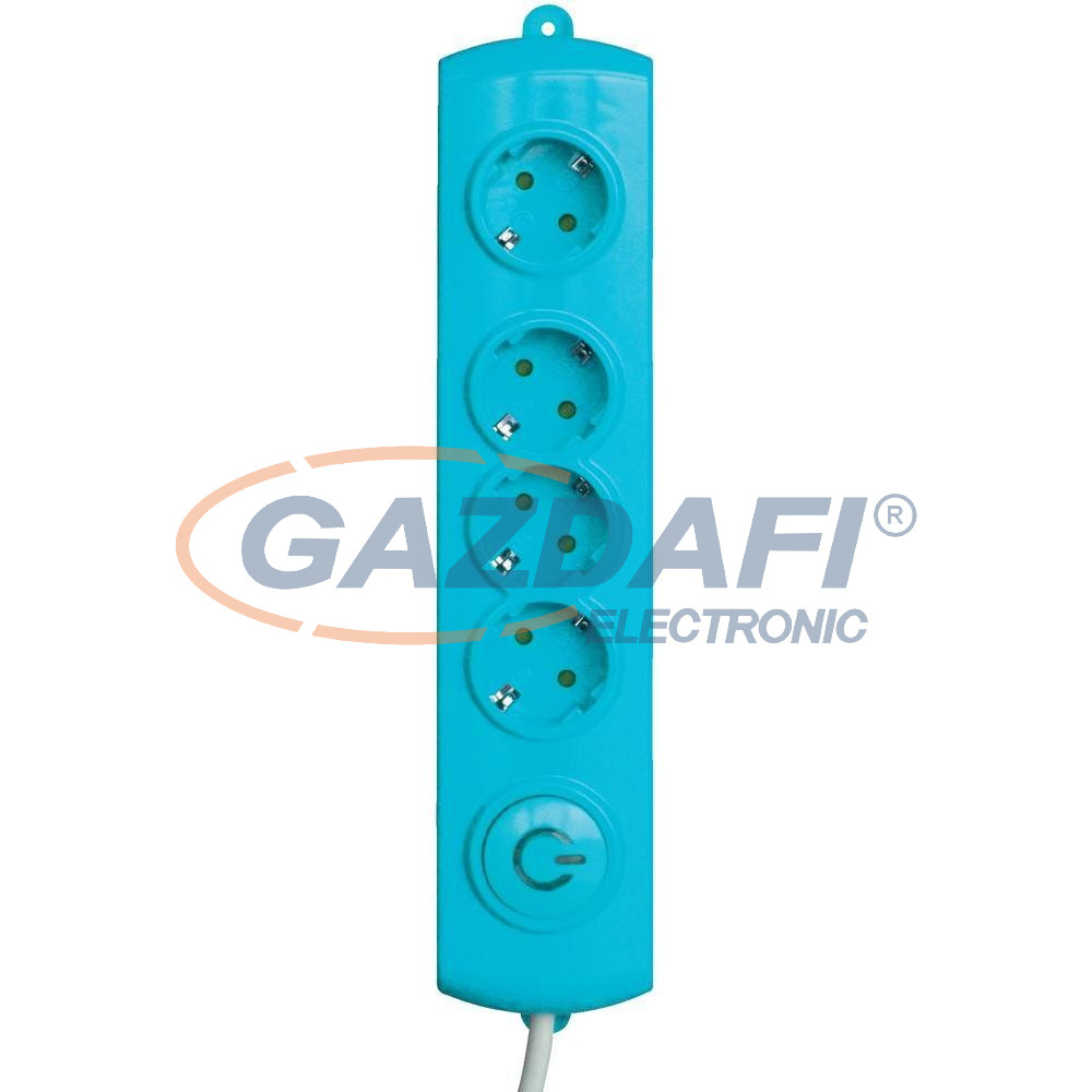 GAO 0376H Asztali elosztó 4-es, 1.4m, 3x1.5, türkiz, lábkapcsolóval; 250V, 16A, 1.4m, H05VV-F 3x1.5 mm², IP20