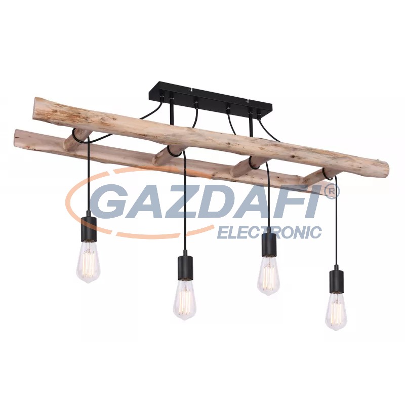 Mennyezeti lámpa fém fekete váz, natúr fa létra, fekete fém drót búrák, HxSzxM: 1150x300x800, fényforrás nélkül 4xE27 60W 230V