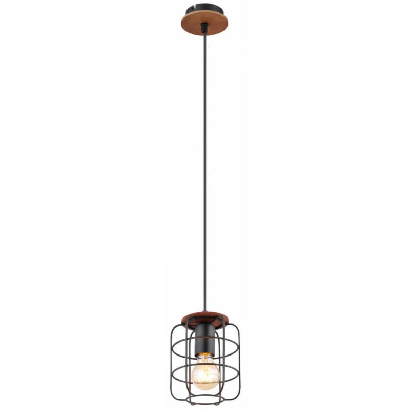 Függeszték lámpa fém fekete, barna fa dekorral. Ø:150, fényforrás nélkül 1xE27 40W 230V