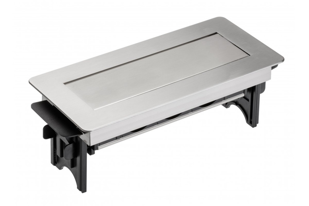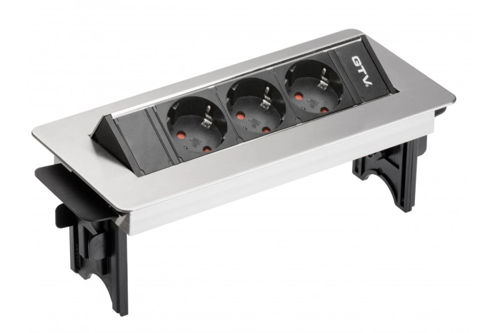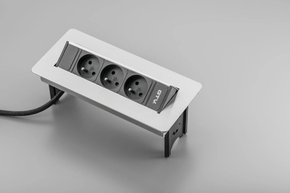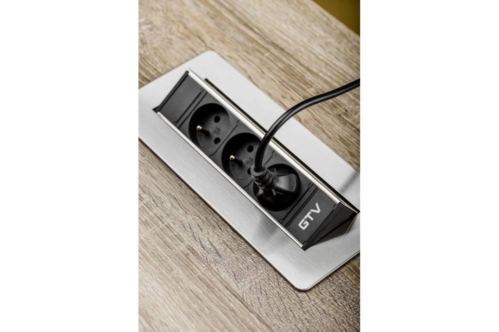 GTV AE-PBC3GU-51BK Átmenő asztali konnektor ház nélkül 3 x foglalat FRANCIA,220-240V AC max.3600W,IP20,kábellel 1.5 m és dugó,szálcsiszolt inox