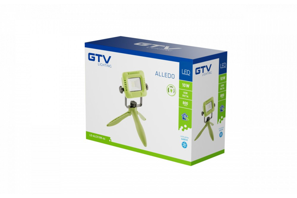 GTV LD-ALCX10W-64 LED reflektor akkumulátorral ALLEDO 10W, 800lm, AC220-240V, 50/60 Hz, PF>0,5, RA>80, IP54, 120°, 6400K, zöld