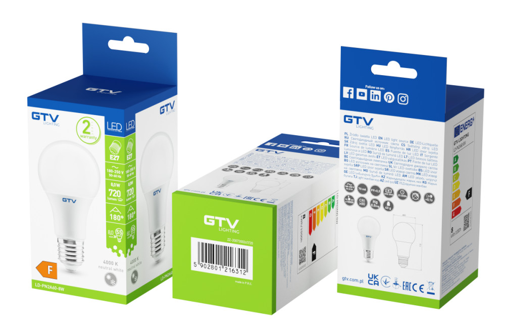 GTV LD-PC2A60-8W LED izzó 8W, A60, E27, 3000K, AC220-240V, sugárzási szög 180°, 470 lm, 87mA