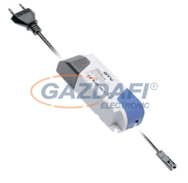 GTV LD-ZZAS07PROKD6 LED tápegység 07W + 2m kábel csatalkozóval + mini AMP, 220-240AC bemenet, 50/60Hz, 12VDC kimenet IP20, 100x39x25 mm