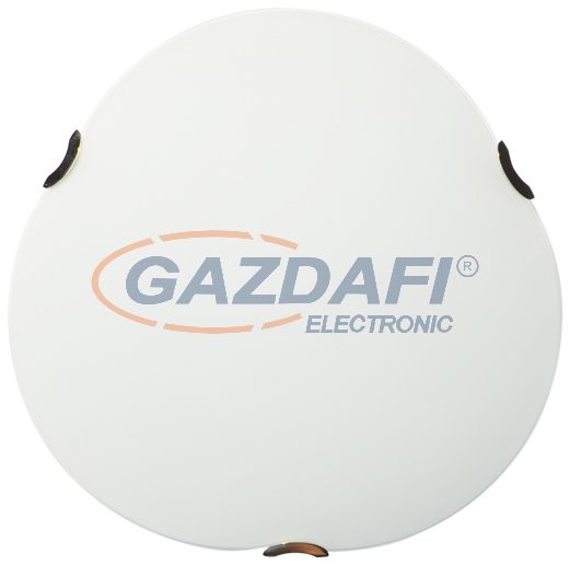 Dekoratív falli- mwennyezeti lámpa. Diffúzor/búra dekoratív préselt üveg, szerkezete lehetővé teszi, hogy egyenletes eloszlású legyen a fény. Test acéllemezből készült. A dekoratív tartók/konzolok harmonizálnak a búra egyszerű alakjával. Galvanizált öntöt