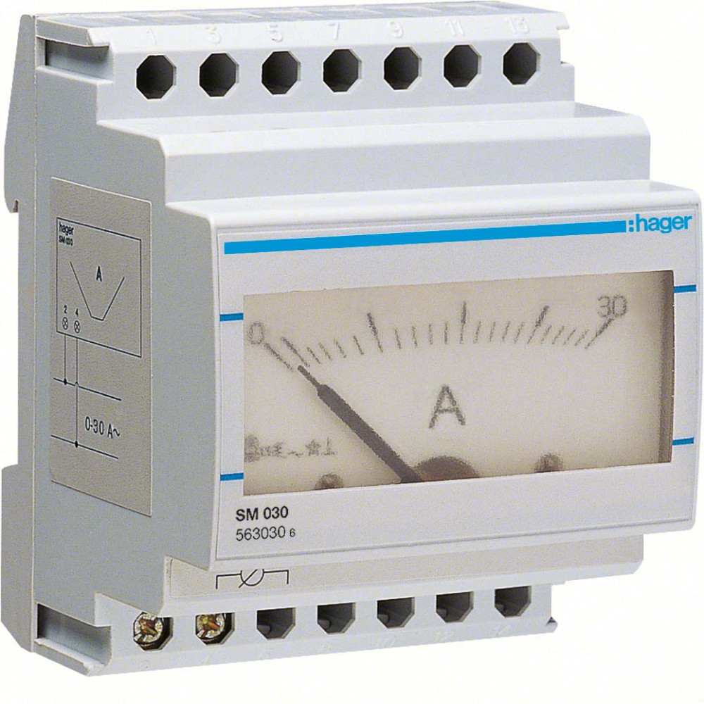 HAGER SM030 Analóg ampermérő, 1 fázisú, direktmérés, 0-30A, moduláris