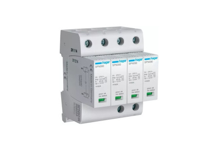 HAGER SPN901R Túlfesz. levezető T1+T2 4P. Dugaszolható, állapotjelző, távjelzős, 1,5kV, 50kA, TNS (6modul)