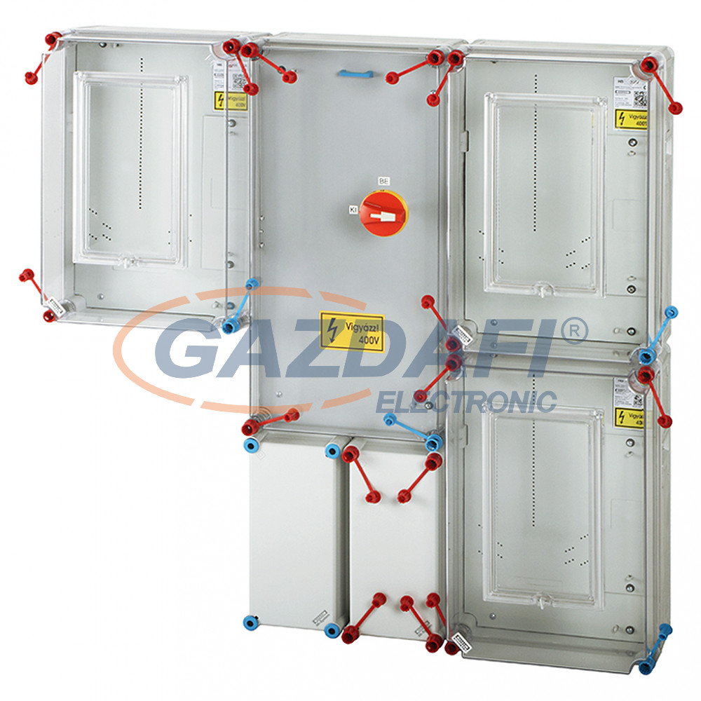 HENSEL HCS431 Csoportos mérőhely, három fogyasztó részére mindennapszaki mérésre 63 A-ig, kapcsolóval és NH 00 szakaszolható biztosítóaljzattal,túlfeszültség levezetőhöz előkészítve
