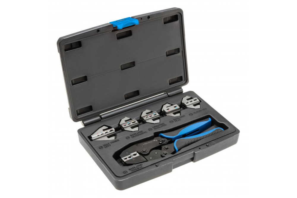 Szorítófogó gyorsan cserélhető szerszámmal. 6 pofát tartalmaz. A jelölési rendszer megkönnyíti a pofák felszerelését. Autószerelő, távközlési, elektronikai és egyéb szerelési munkákban használatos. A szabadon választható szorítószerszámok lehetővé teszik a szerszám testreszabását.Jellemzők