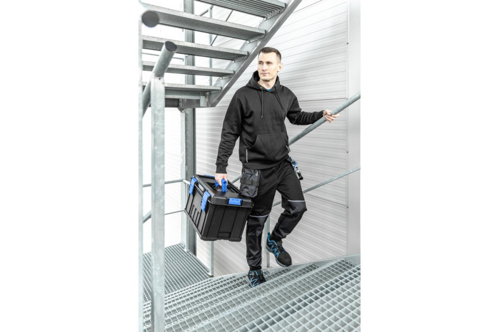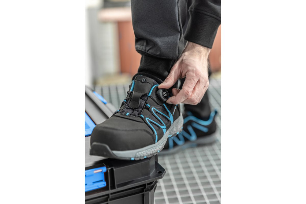 Férfi védőcipő, amely megfelel az ISO 20345:2022 szabvány szerinti S1P osztálynak. A kiváló minőségű kivitelezés kényelmet és kényelmet biztosít. A modell rendelkezik a Csipke rendszerrel a kötés gyors beállításához és a cipő pontos és egyenletes illeszkedéséhez. A cipők kompozit könnyű orrvédővel vannak ellátva, amely megvédi a lábujjakat, pl. leeső tárgyak, törmelék, szerszámok ellen. A csúszásgátló talpnak köszönhetően a lábbeli tökéletes egyenetlen és csúszós felületeken való gyalogláshoz. Logisztikában, szállításban, autóiparban, felújítási munkákban ajánlott cipő. Beltéri használatra tökéletesek (pl. csarnokok).