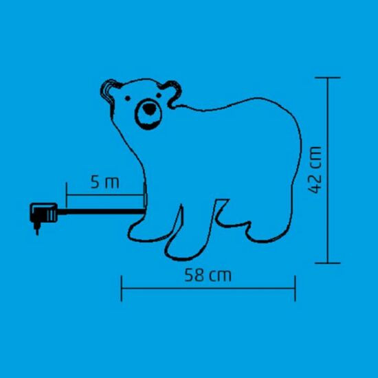 A jegesmedvében elhelyezett 120 hidegfehér LED fényével a dekoráció életre kel, és ragyogóan világítja be a környezetét.