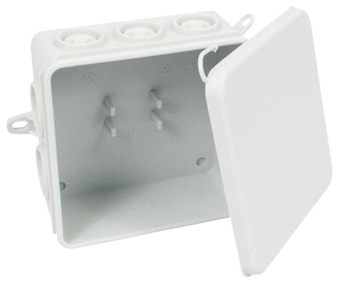 8130 - Box with IP 54 protection, configuration HA, white colour, package - 60 pcs - for installation in places with increased humidity and dust, inlets for cables or pipes according EN 60423